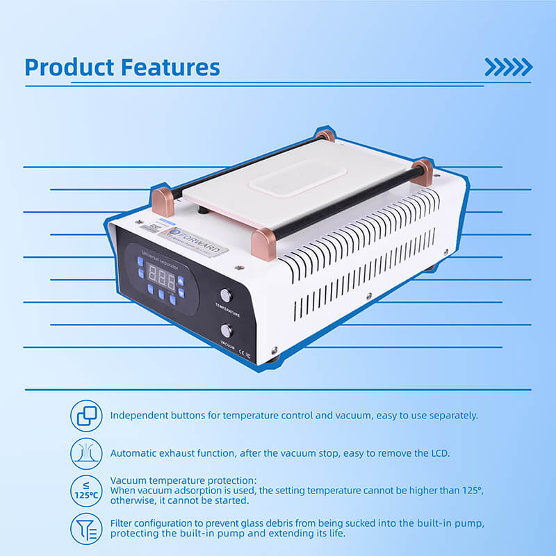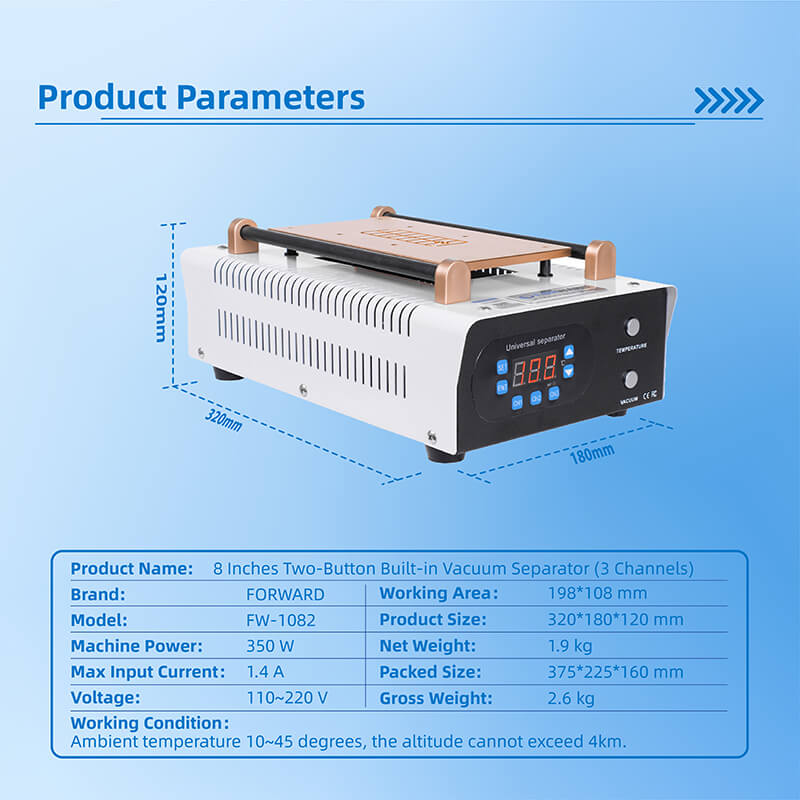 FW-1082| 8 Inches Two-Button Built-in Vacuum Separator (3 Channels) | LCD Screen Separator Machine for Phone Repair