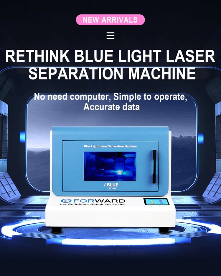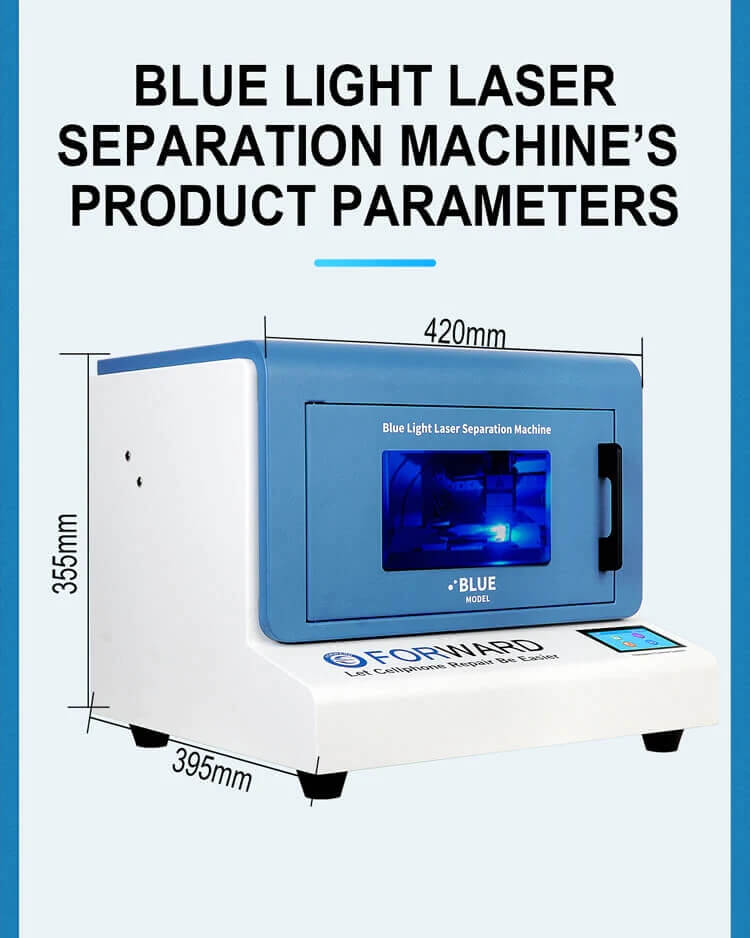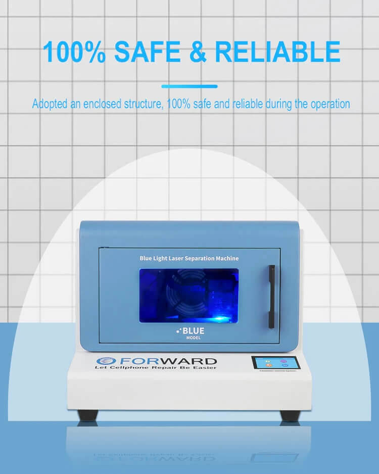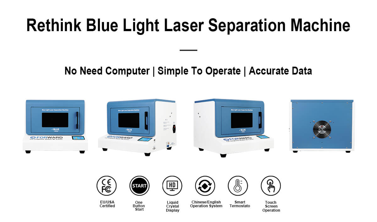 7. Avoid refraction damage to LCD. The optical fiber laser machine may produce refraction to damage the LCD when it handles very smashed glass. But the blue light laser separation machine does not have such problem, and it’s absolutely safe and does not hurt the LCD.