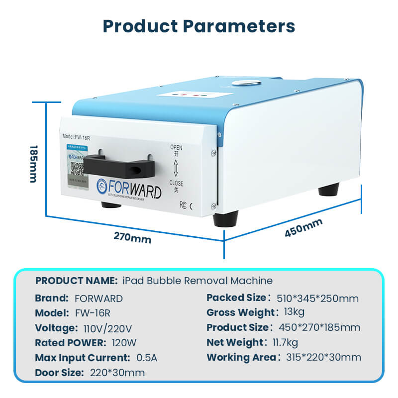 FW-16R iPad Bubble Removal Machine Features