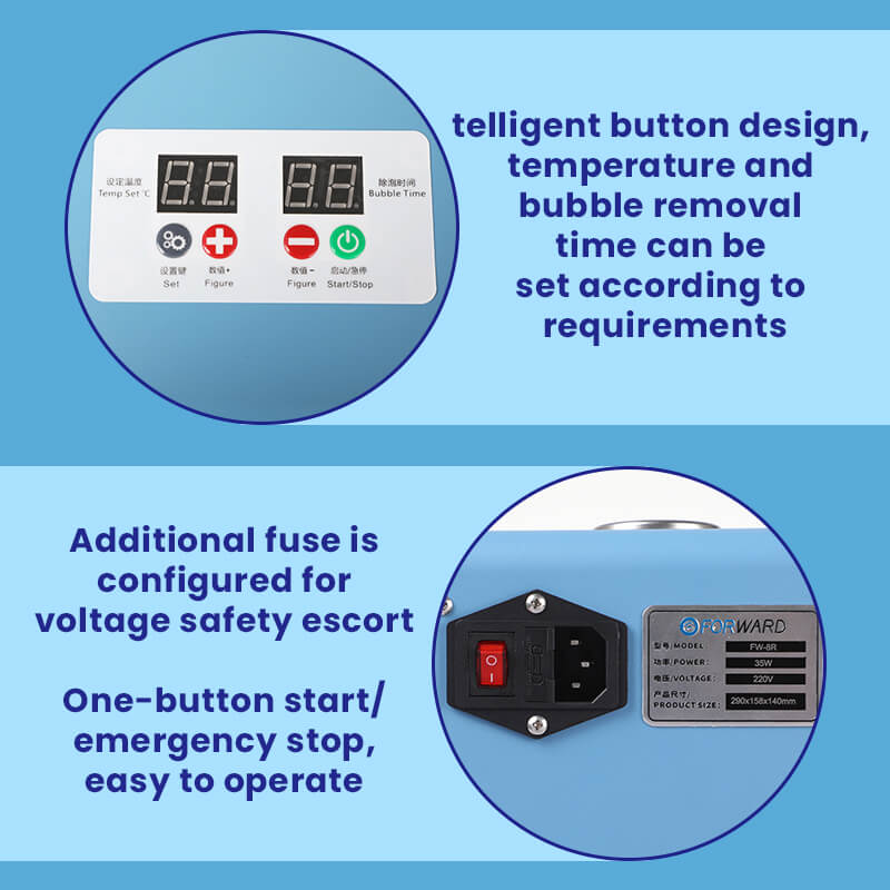 Intelligent button design, temperature and bubble removal time can be set according to requirements