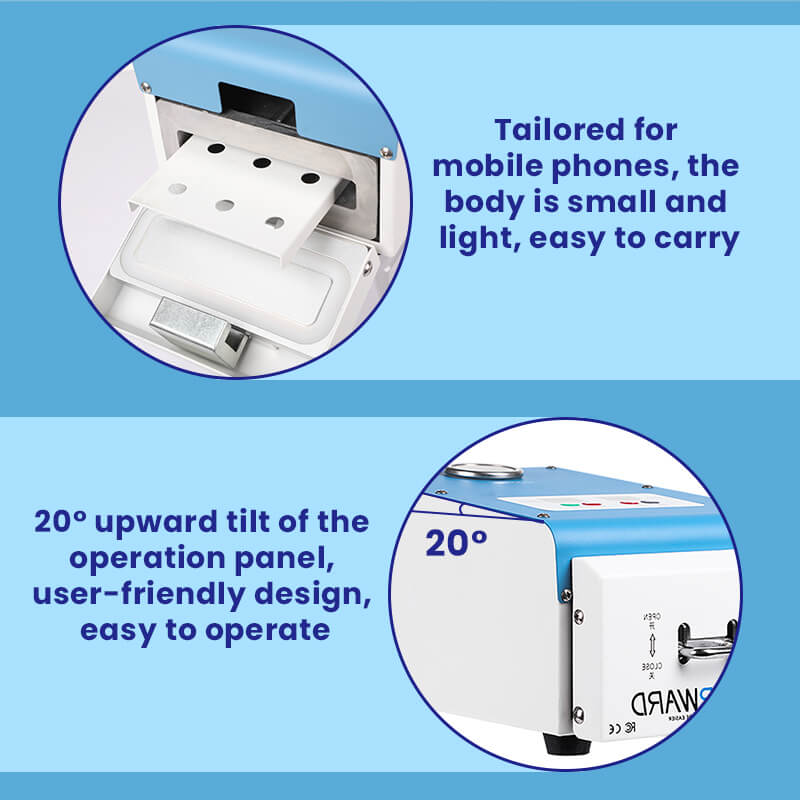 Forward fw-8R mini bubble removal machine is used for all model mobile phone LCD refurbishment, specializing in LCD bubble removal with safety and high efficiency. As the most safety-focused defoamer autoclave machine in the industry. It has many advantages over other common bubble removing machines, such as: Safety door design, zero risk operation; The integrated design of the bubble removal bucket. Air tightness is good, long service life; Upgraded 24V low-voltage air valve configuration, effective noise reduction...