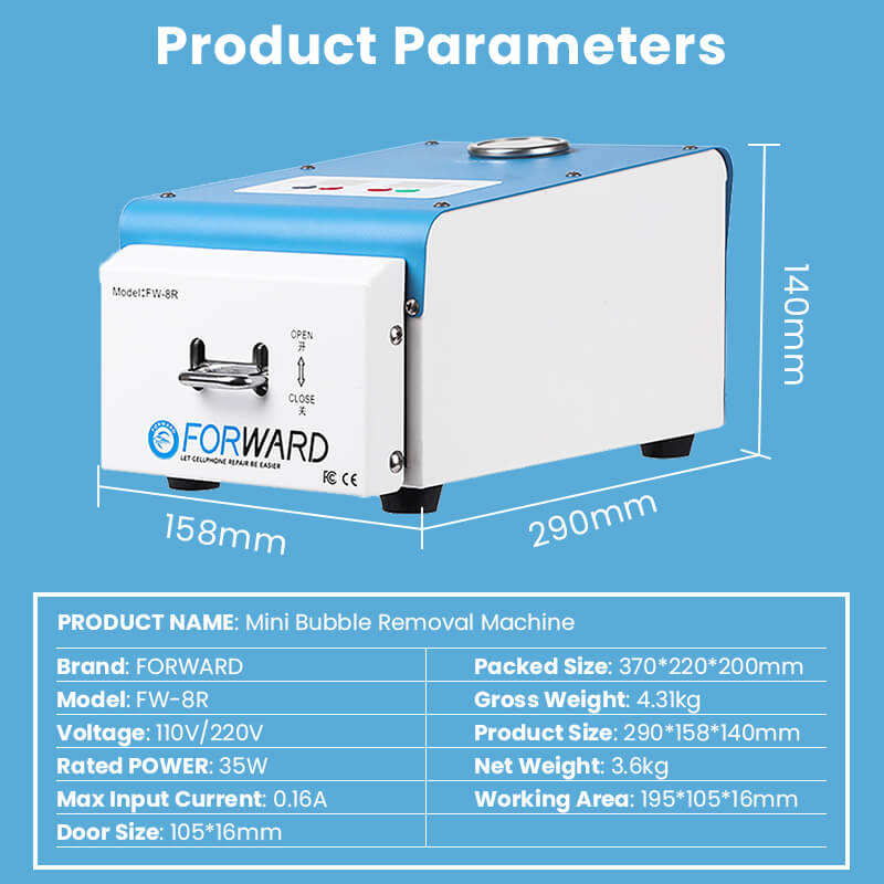 Forward FW-8R Mini Bubble Removal Machine Features