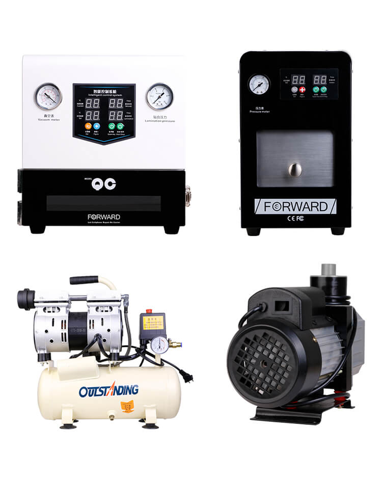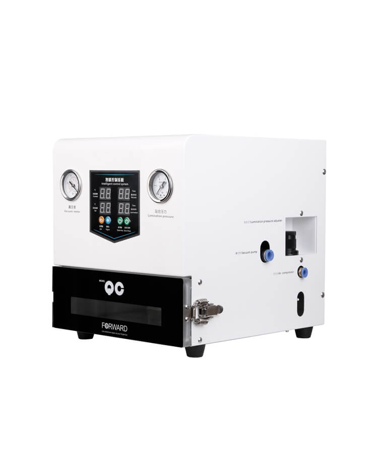 QC Set Package: 1×Lamination machine, 1×2 Meters pipe(8mm), 1×1.5 Meters pipe(10mm), 1×PY-08 joint(8mm), 1×Teflon tape, 1xBlack magic mat, 1xAcrylic base mold, 1xConnection PCF8-02, 1xPower Cord, 1×10 Inches bubble machine, 1x8L Compressor, 1x2L Vacuum pump.