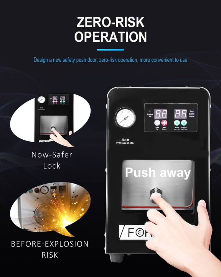 1. The machine door use 14.5mm thick aluminum, it is safer and more reliable.