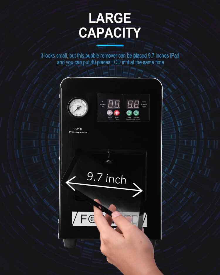 5. This bubble remover can be placed 9.7 inches of iPad and you can put 40 pieces LCD in it at the same time.